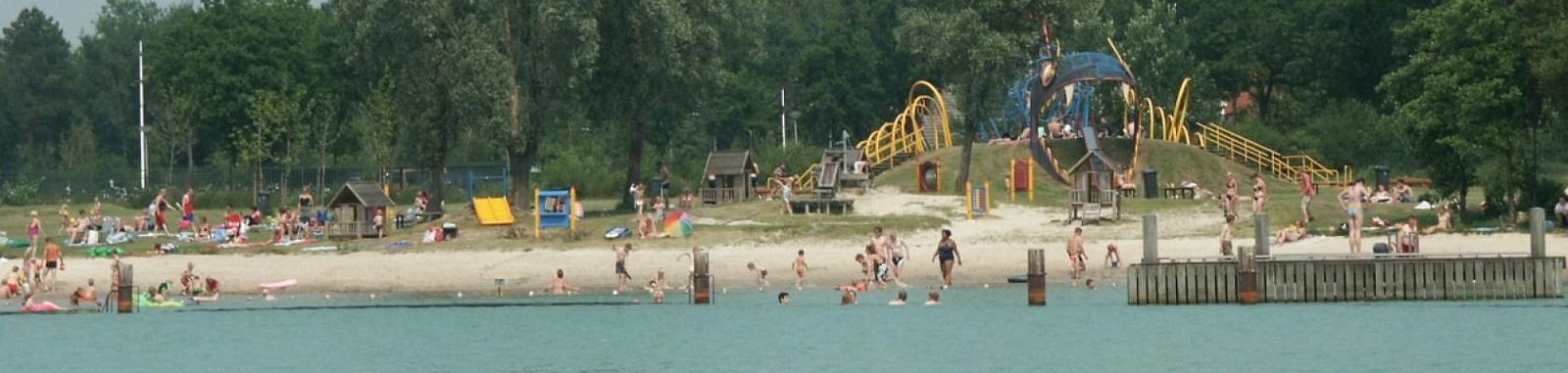 Dit dagrecreatiegebied ligt net buiten de camping, op een paar honderd meter afstand. U loopt de camping af via de in / uitgang en volgt het schelpenpaadje. Dit schelpenpaadje leidt u naar de ingang van het strandbad. Als gast van Camping 't Strandheem heeft u gratis toegang.